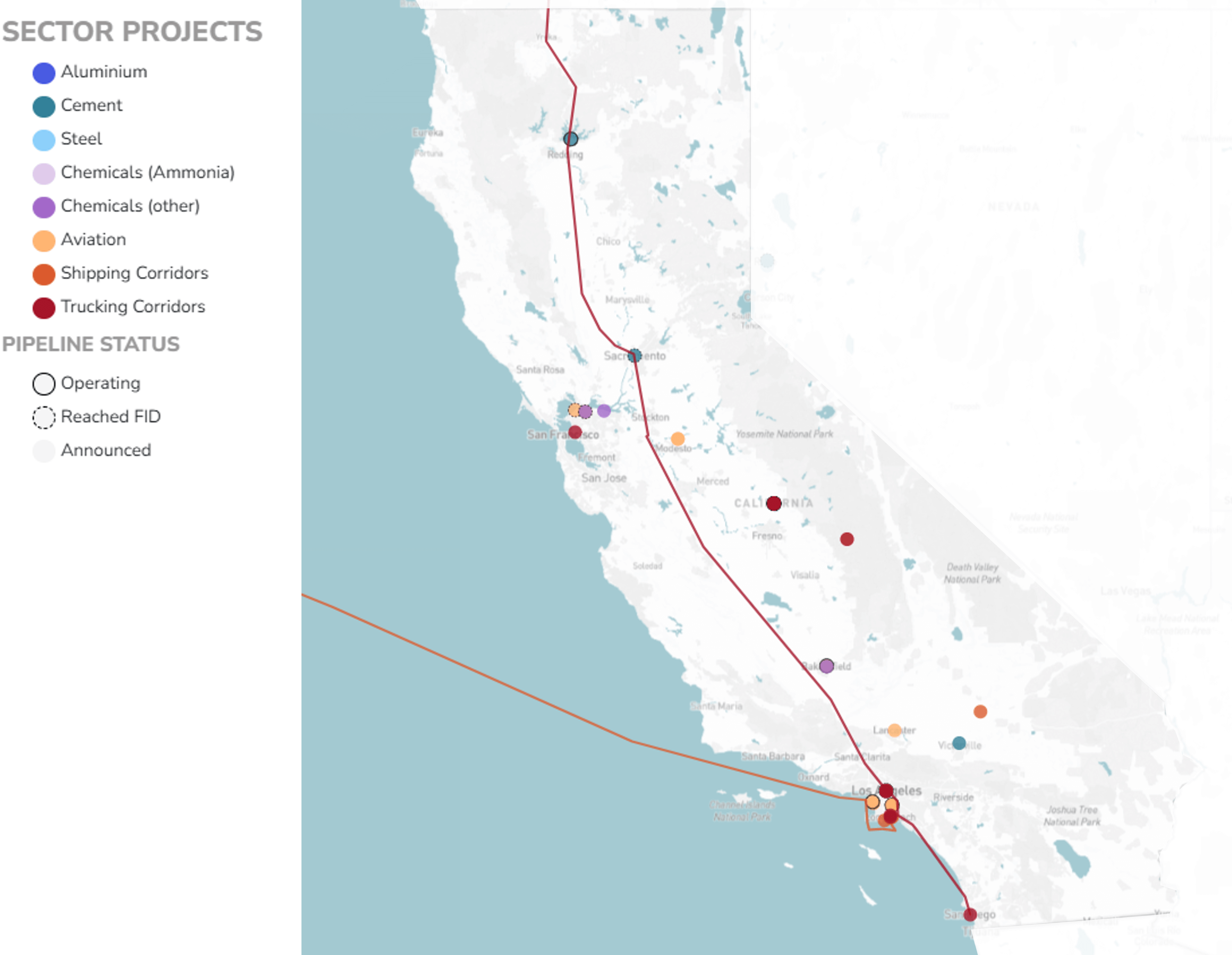 As of November 2024 date, there are 24 public proposed decarbonisation projects in California spanning four sectors. Only four are operational and a further three have investment. The ARCHES Hydrogen announced an investment of $11.4 billion in public and private matching funds to complement $1.2 billion awarded by the DOE to support 10 hydrogen production projects and offtake projects across ports, trucking, shipping, and power.